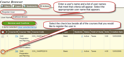 - Select the check box beside all of the courses that you would like to register the user in.